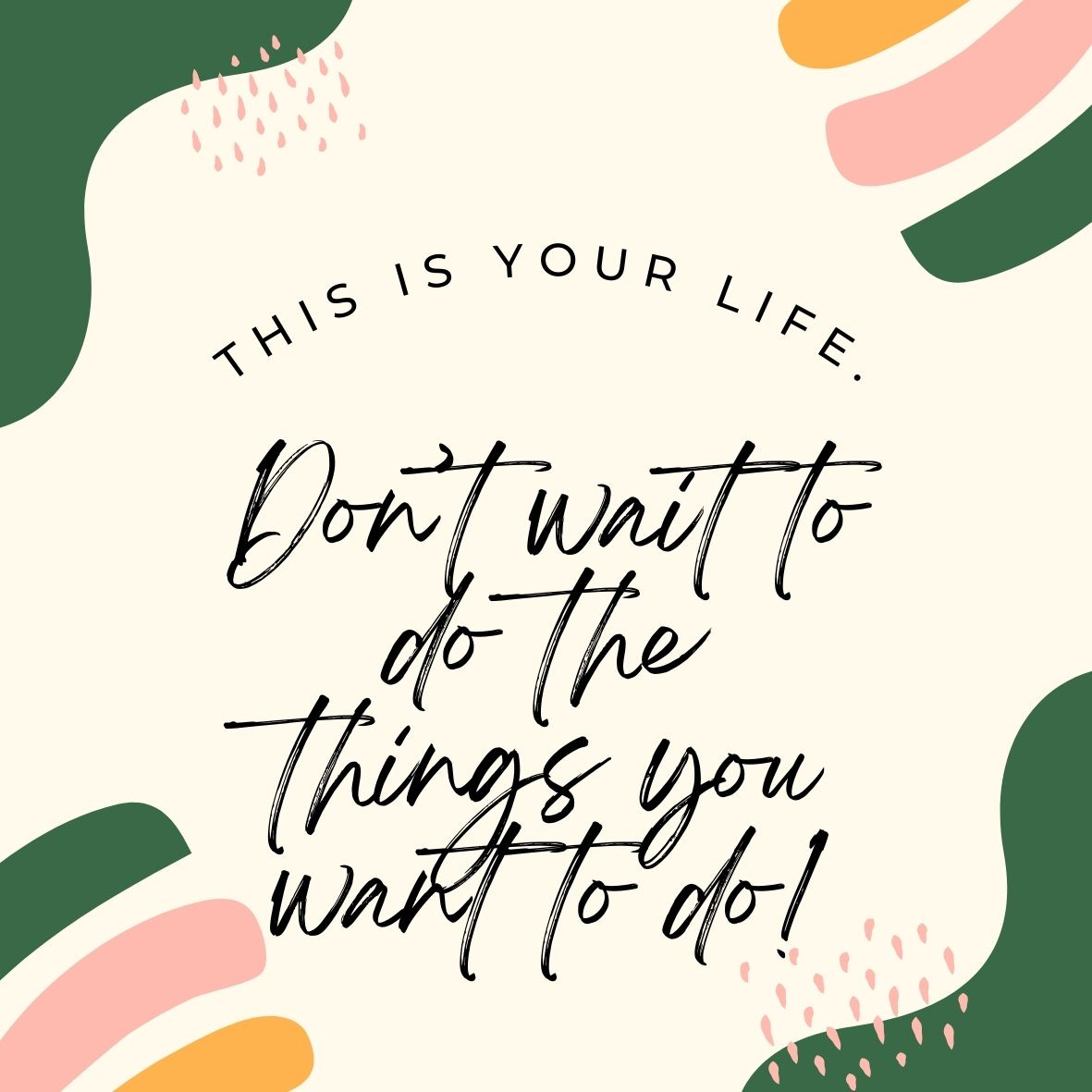 This is it. Your life. Don’t wait to do the things you want to do. Do them now!